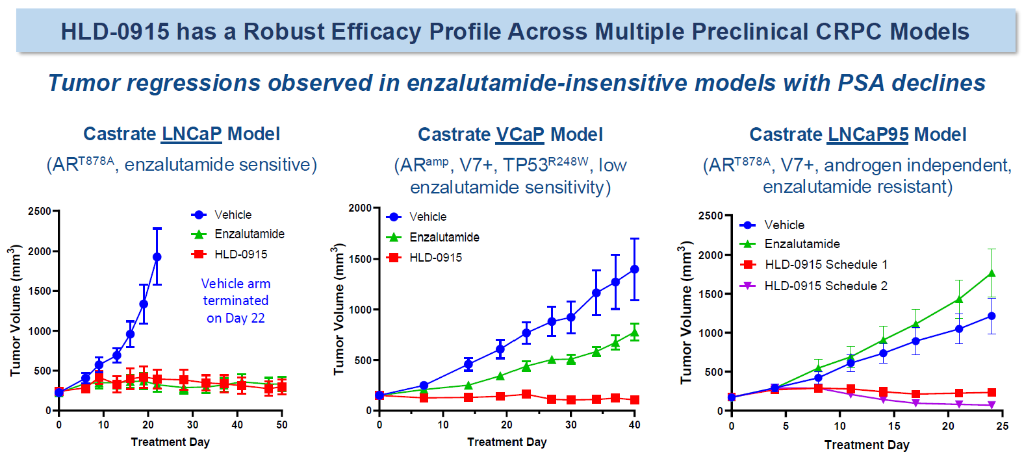 HLD-0915 的临床开发策略:2025 年在 mCRPC 中进行 1 期试验,乳腺癌的 IND(Investigational New Drug,新药临床试验申请)正在进行中,以及针对新肿瘤类型的产品线开发,同时也在探索超越肿瘤学的广泛平台。